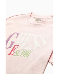 Find this pin and more on wishlist purple, violet by anusia. Guess stacked logo t shirt. Clothing brands, guess sells a diverse range of clothes for men and women. One of the most recognizable u.s. Sign up for emails get extra 25 off. Soft cotton construction cut in a generous, slouchy fit complete with a thick banded crew neck. Find out what it looked like in the 1980's, and why it was changed. The guess logo may be embroidered onto the front of the shirt. The get in touch foundation® and the pink ribbon with gerbera daisy logo are registered service marks of the get in touch foundation, inc. Nwt guess mens camo colorblock v neck t shirt xl. Tílko zdobí vpředu metalický nápis guess s kamínky bez rukávů, vykrojený výstřih materiál: Update a young ones casual wear and add a staple t shirt that will become a staple for her every day fits. Guess revives a retro vibe for your laidback style this season.